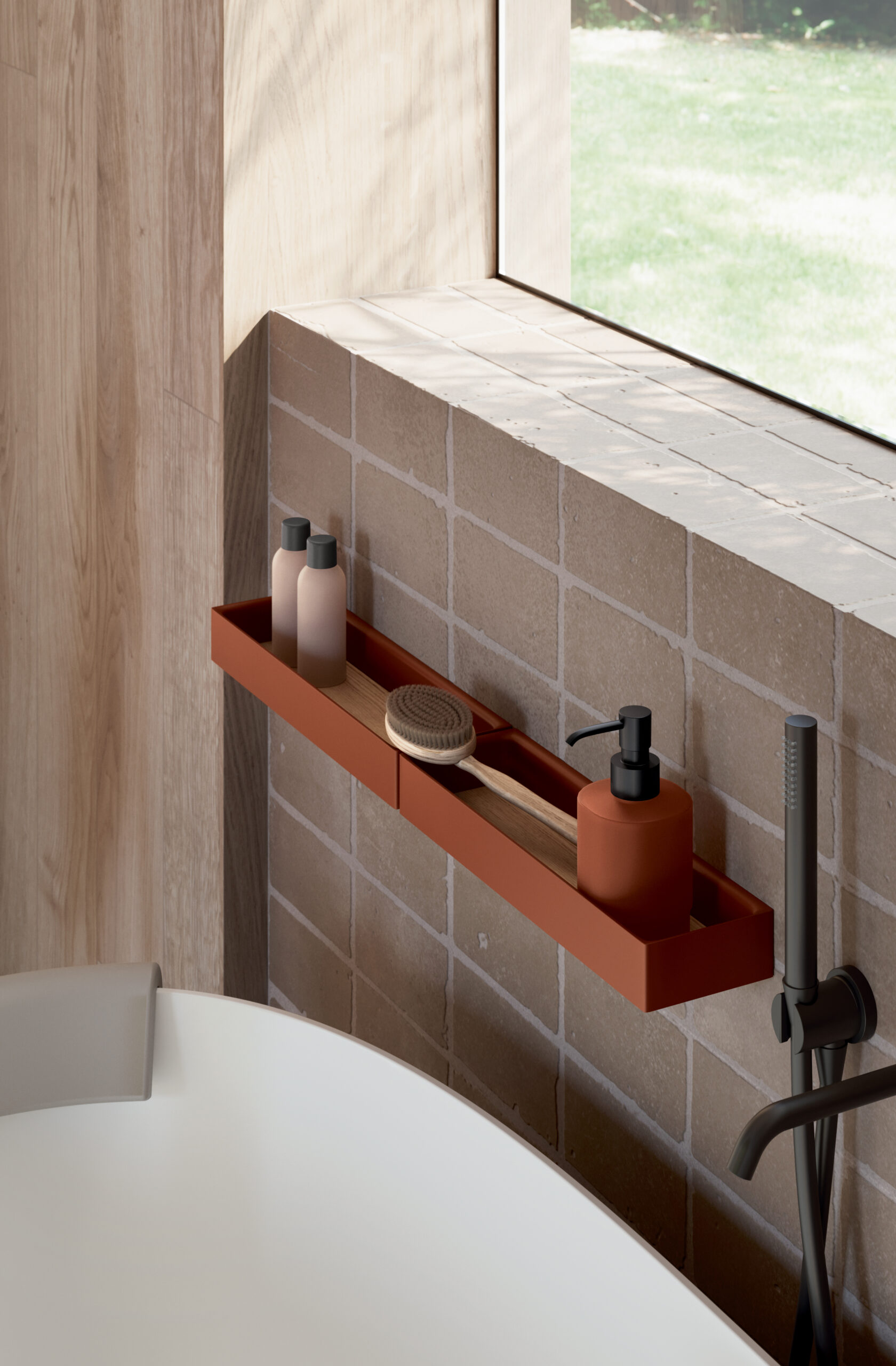Étagère avec drainage, adaptée pour une installation à l’intérieur de la douche.